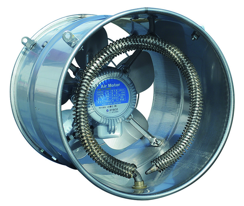 풍향가변형 공기교반기는 여름철에는 팬의 방향을 위쪽으로 하고, 겨울철에는 팬의 방향을 아래쪽으로 하면 환풍기 및 천창 개폐 시 공기를 밖으로 원활하게 배출하여 줍니다.