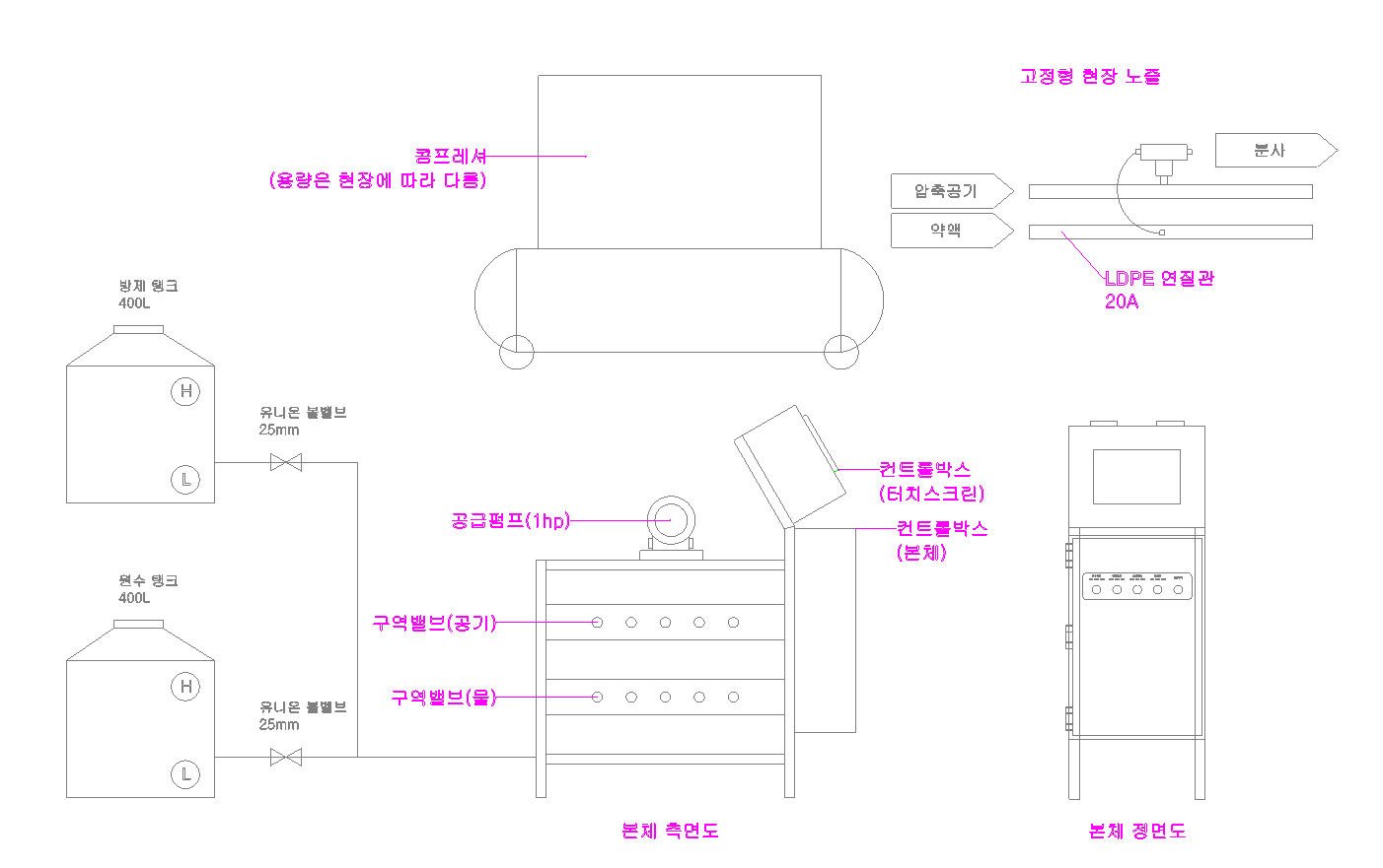 | 전자밸브 | 원수흡입, 방제흡입, 방제투입, 퇴수밸브, 에어라인, 물라인 | ||
