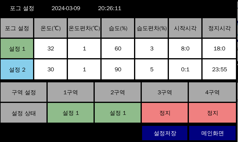 | 소프트웨어 | 온습도 제어, 시간 제어, 자동 방제 | ||